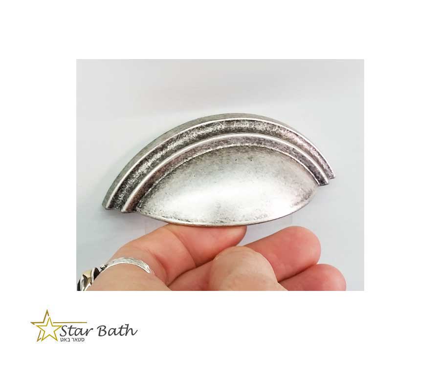- ידית קונכיה דגם 78-64 כסף עתיק, לריהוט ומטבחים קלאסיים וכפריים