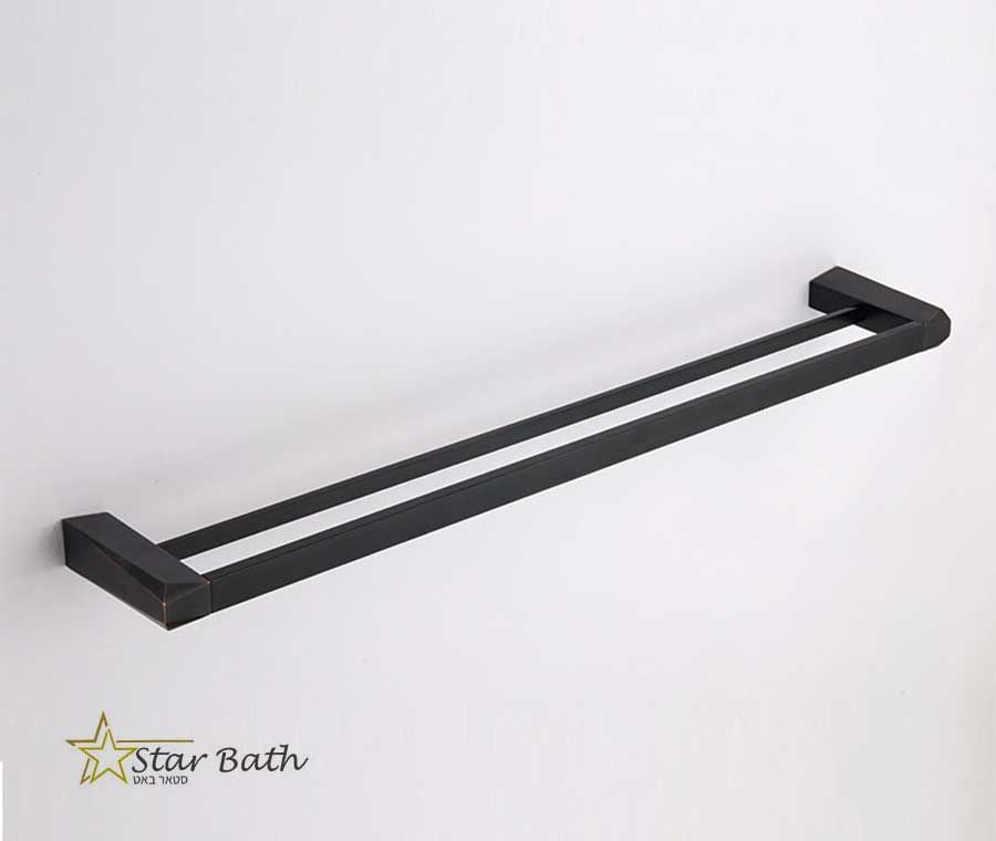 מוט כפול למגבת 60 ס״מ לאמבטיה STONE שחור