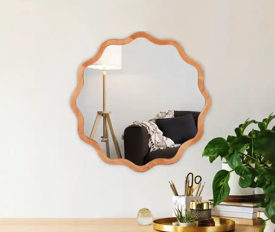 הכירו את מראת העץ העגולה המסולסלת, המשלבת בין עיצוב ייחודי לפונקציונליות גבוהה. בעיצוב עגול עם מסגרת מסולסלת